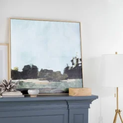 Freshen up your space with some nature-inspired flair when you display the Treeline Abstract Framed Canvas from Threshold™ designed with Studio McGee. This framed artwork displays an abstract landscape portrait of a treeline along water for a soothing aesthetic you’ll love. A thin, light-wood frame adds to the nature feel without detracting from the image. Measuring 36 inches by 36 inches, this framed landscape art is sure to making a striking piece of decor wherever it’s placed. Let it stand out on its own on a wall, or lean it against a mirror to create more visual interest.